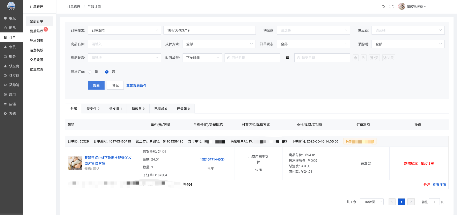 显示全部小商店的店铺订单,下单会员为小商店小程序会员,金额为小商店自主定价金额,支付方式为小商店小程序微信支付。